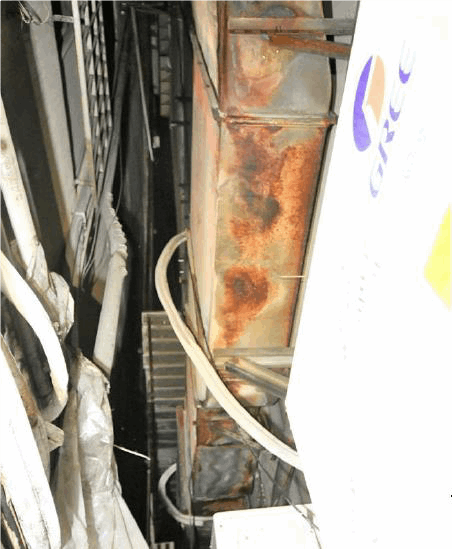 (三) 定期清潔累積之油垢,尤其是營業場所,油垢累積速度遠大於一般住家,且排油煙管長度通常延伸較長,應視油垢累積狀況訂定適當清潔頻率,並落實執行,且除了瓦斯爐台、抽油煙機擦拭及保養外,排油煙管因設置高度較高、拆卸不易等因素,多被忽略而成為清潔死角,故清潔時亦須注意。
