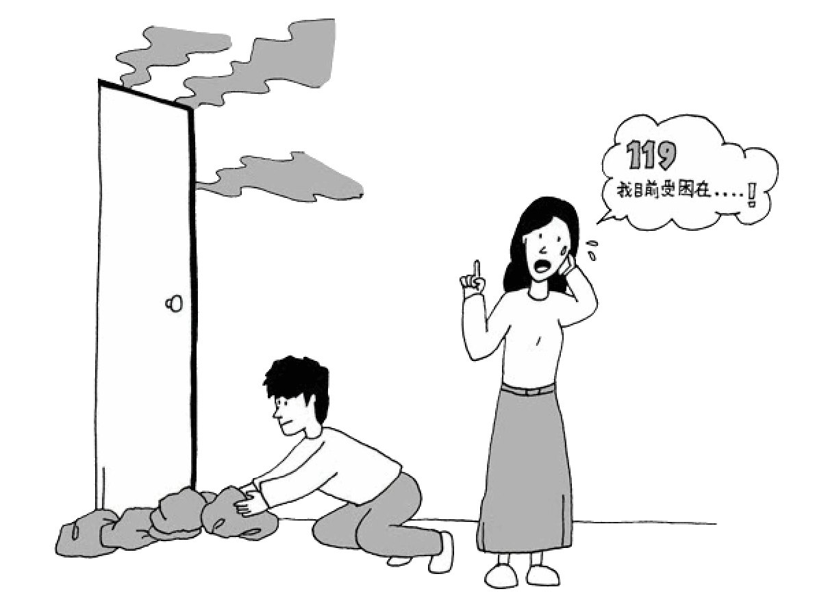 ①快速觀察居室門的外觀 ( 縫隙中有沒有煙 )