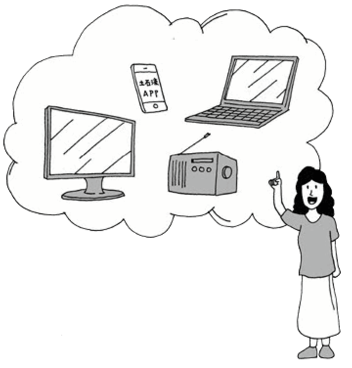 可以透過下列管道隨時獲知土石流警戒訊息,並建議和鄰里親友間保持聯繫,以便提醒或了解目前近況。
