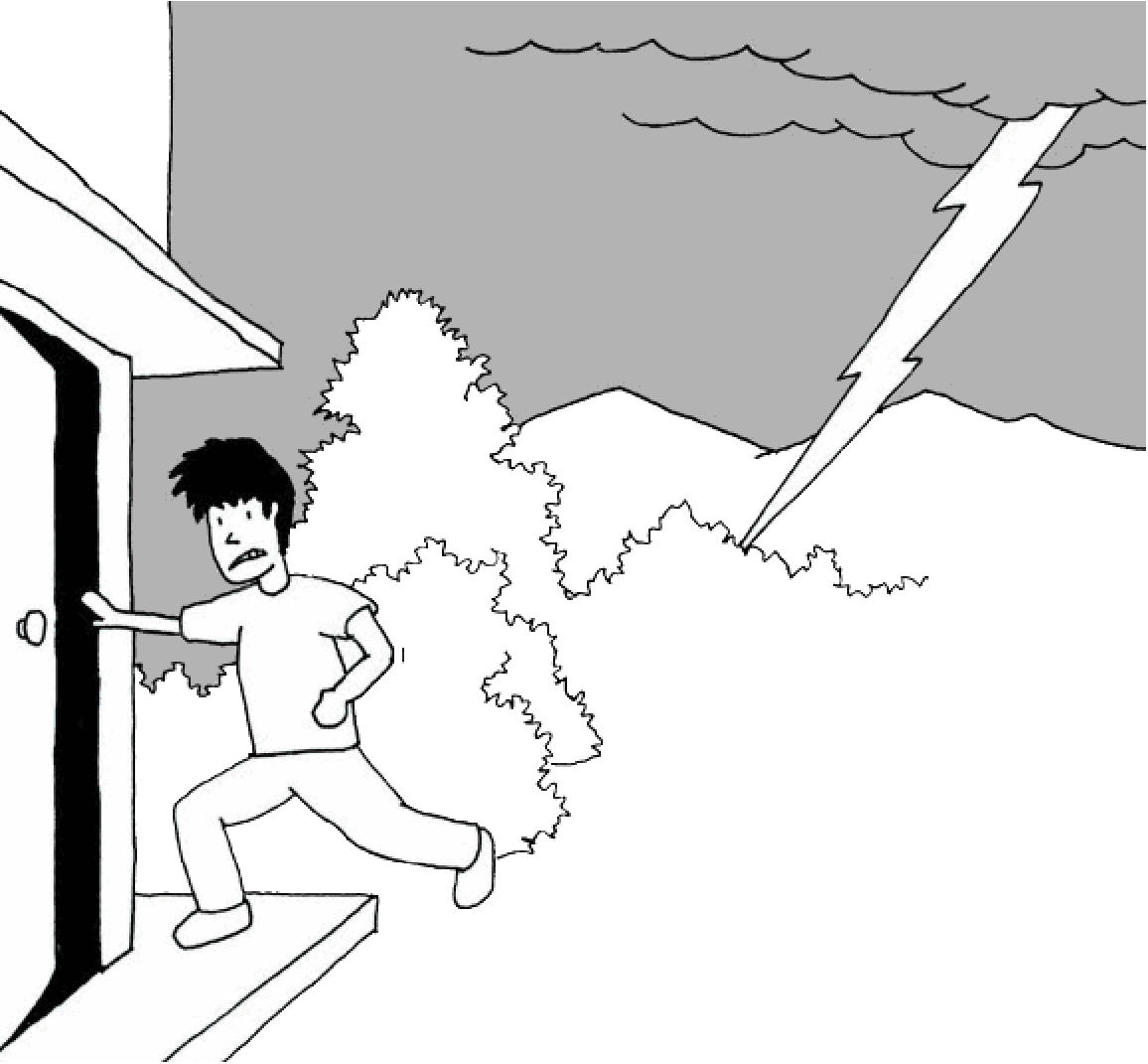 戶外活動時首應避開於高山稜線、山頂涼亭、野外空曠等地區,避免騎乘機車或自行車、打高爾夫球、網球、農田耕作等,這些活動都可能使自己變成相對最接近雲層的狀 況,會有較高遭雷擊的機率。