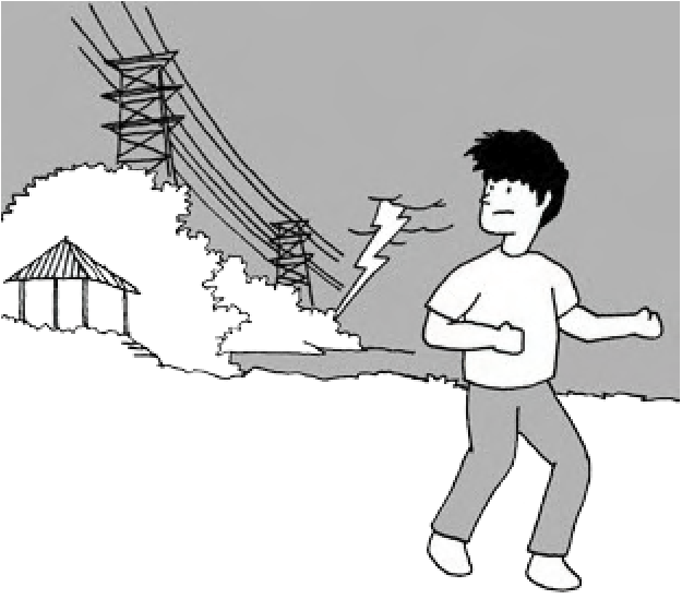 ②若在空曠場地,請蹲下抱膝蓋,勿站立於高處或山頂。