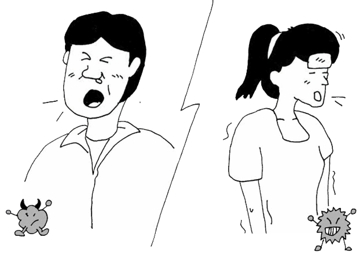 咳嗽、喉嚨痛、肌肉痠痛疲憊感、反覆發燒 38℃, 一人得到全家都得。